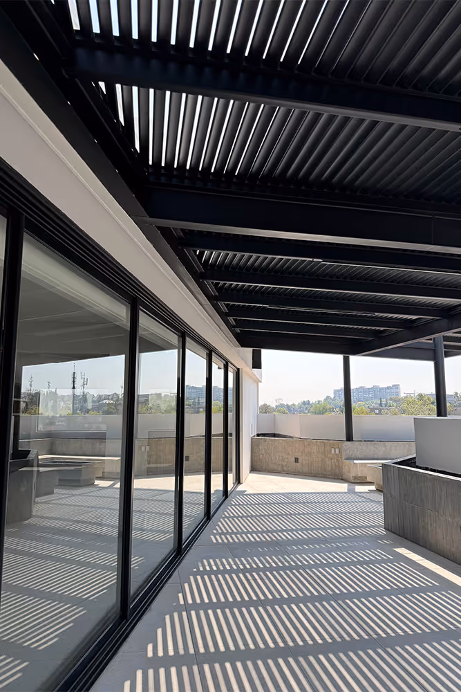 Fabricamos pergolados para terrazas en acero y cristal templado.